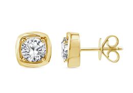 New Brilliance Lab Grown 1.50CTW Bezel Set Diamond Earrings in 10K Yellow Gold