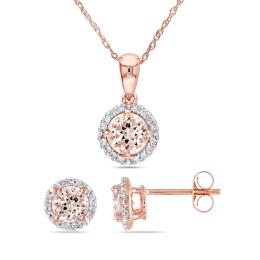 Julianna B 10K Rose Gold 0.14CTW Diamond & Morganite Bridal Set