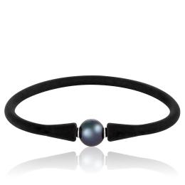Black Silicone Black Freshwater Pearl 8" Bracelet