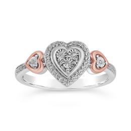 Sterling Silver & 10K Rose Gold Heart 0.11CTW Diamond Ring