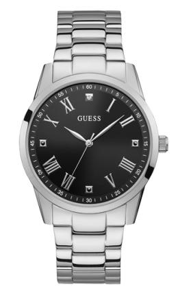 Guess Men's Brushed and Polished Steel Bracelet with Black Dial Watch
