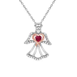 Sterling Silver & 10K Rose Gold Created Ruby & Created White Sapphire Necklace