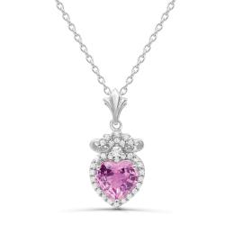 Sterling Silver Created Pink & Created White Sapphire Heart Pendant
