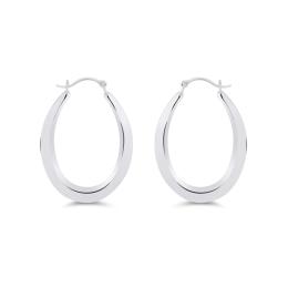 14K White Gold 27mmx20mm Oval Hoop Earrings