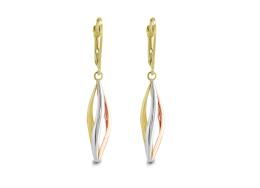 10K Tri-Colour Three Tubes Diamond-Cut Hoop Earrings