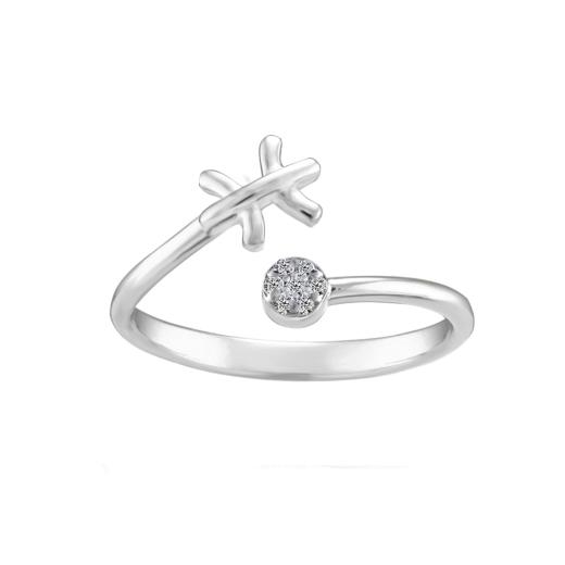 This sterling silver Pisces zodiac ring is a beautifully crafted piece that celebrates those born under the sign of Pisces. The ring features sparkling diamonds, adding a touch of elegance to the symbol of the fish, which is intricately designed in the center.