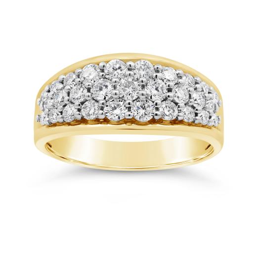 Celebrate everlasting love with the Glacier Fire Canadian 1.00CTW Diamond Anniversary Ring in 10K Yellow Gold. Featuring a stunning row of ethically-sourced Canadian diamonds, this ring sparkles with elegance and sophistication, making it the perfect symbol of commitment and cherished memories.