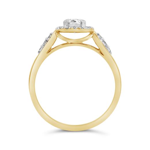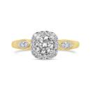 A striking halo design makes this fashion ring a standout piece. At its center, a brilliant lab grown diamond is framed by a cushion-shaped halo of sparkling stones, bringing the total weight to 0.70 CTW. Crafted in warm 10K yellow gold, the ring also features diamond accents along the shoulders for added elegance and dimension.